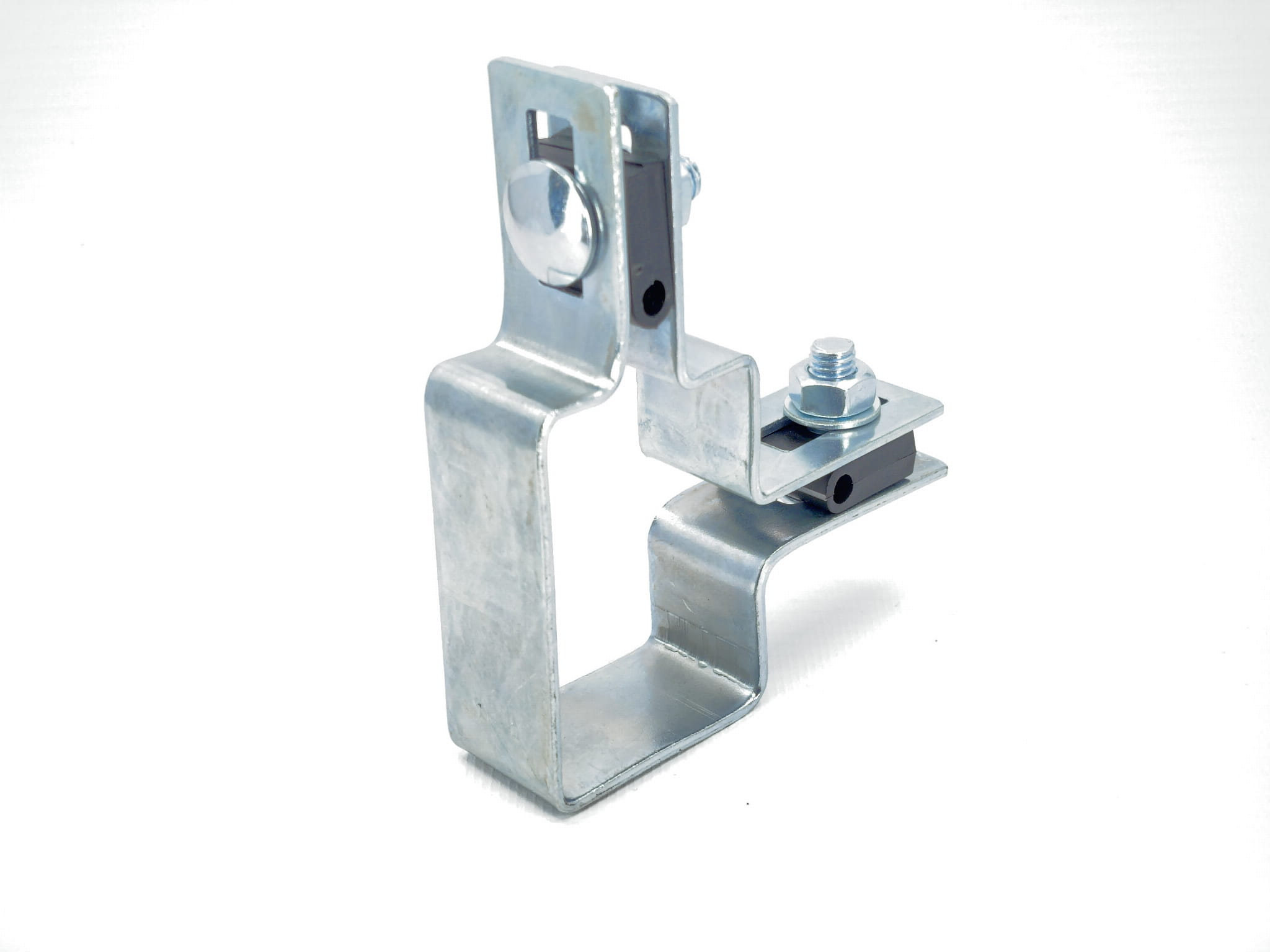 Obejma pośrednia służy do zamocowania paneli do słupka po obu jego stronach w układzie wzdłużnym. Składa się z dwóch jednakowych części.