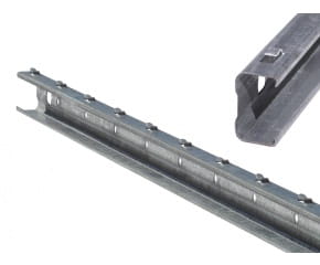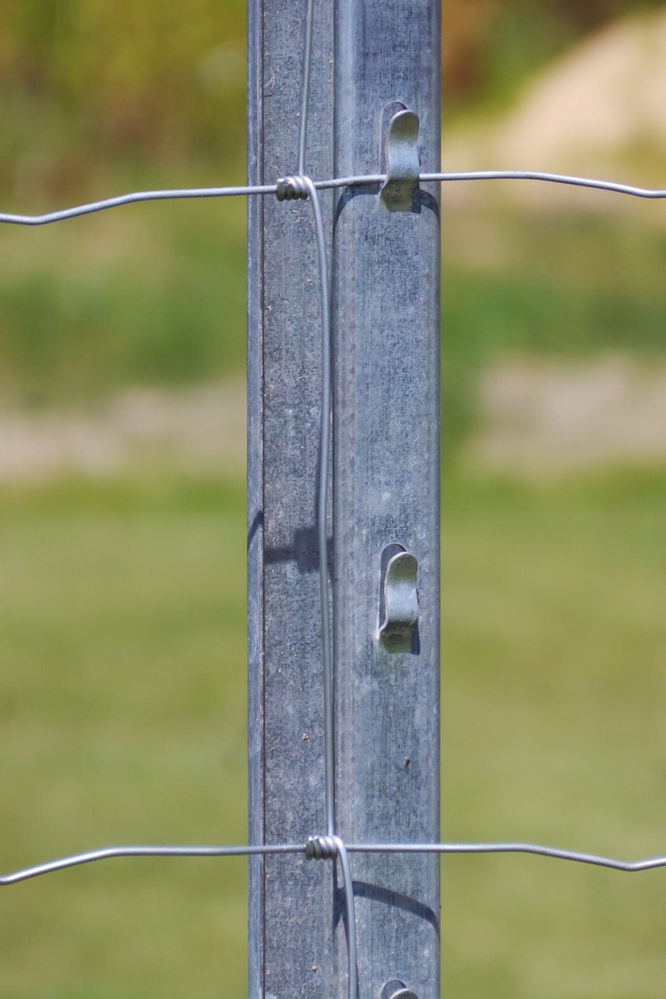 Słupek ogrodzeniowy posiada zaczepy i otwory dzięki czemu łatwo można na nim zamontować siatkę leśną, bez dodatkowego asortymentu.